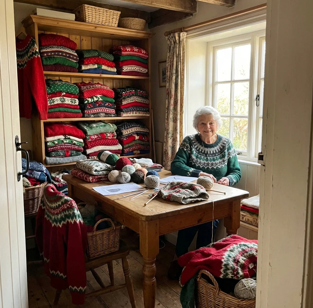 Depuis plus de 30 ans, je trouve la paix dans mes aiguilles à tricoter, créant des pulls qui racontent des histoires discrètes d'attention et de beauté. Chacun commence par un croquis, une tasse de thé et une touche d'inspiration venue du monde extérieur, derrière ma fenêtre.
